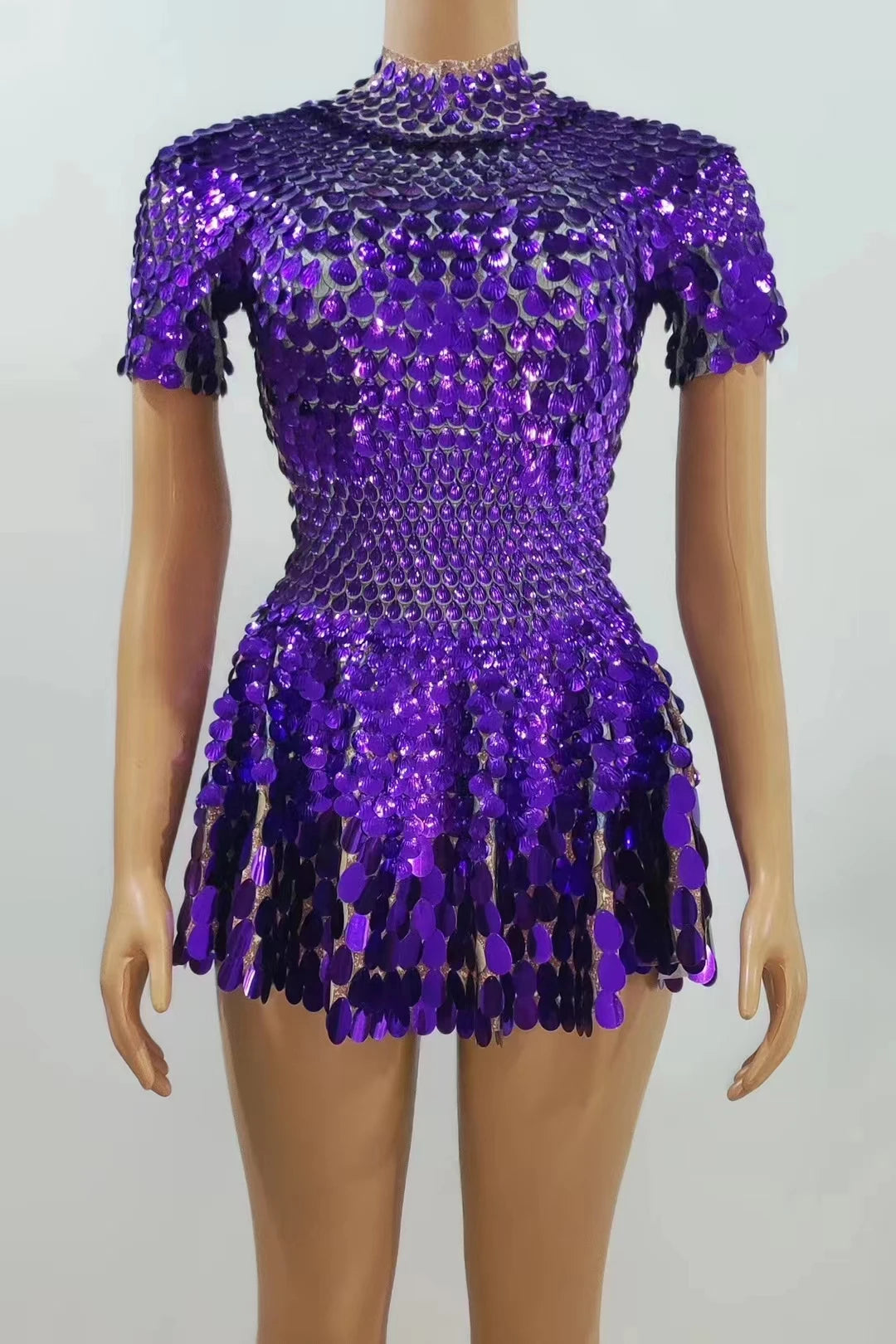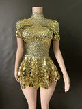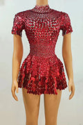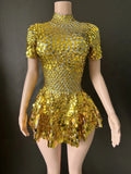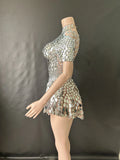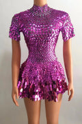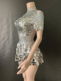 Brilla con luz propia en tu noche especial con este sexy minivestido de leotardo para discoteca. Adornado con deslumbrantes lentejuelas y brillantes pedrería, este body plateado está diseñado para celebrar cumpleaños, fiestas y eventos glamurosos. Con su corte favorecedor y detalles llamativos, este precioso vestido te garantiza destacar y crear recuerdos imborrables en la pista de baile.