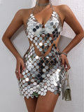 Vestido de verano sexy con lentejuelas metálicas transparentes para mujer, vestido de noche sin espalda para fiesta, vestido mini ajustado para playa, club, cumpleaños