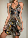 Sexy See Through Mini Metal Sequin Summer Dress Women Glitter Beach Club Birthday Party Dress Elegant Evening Dresses Vestidos