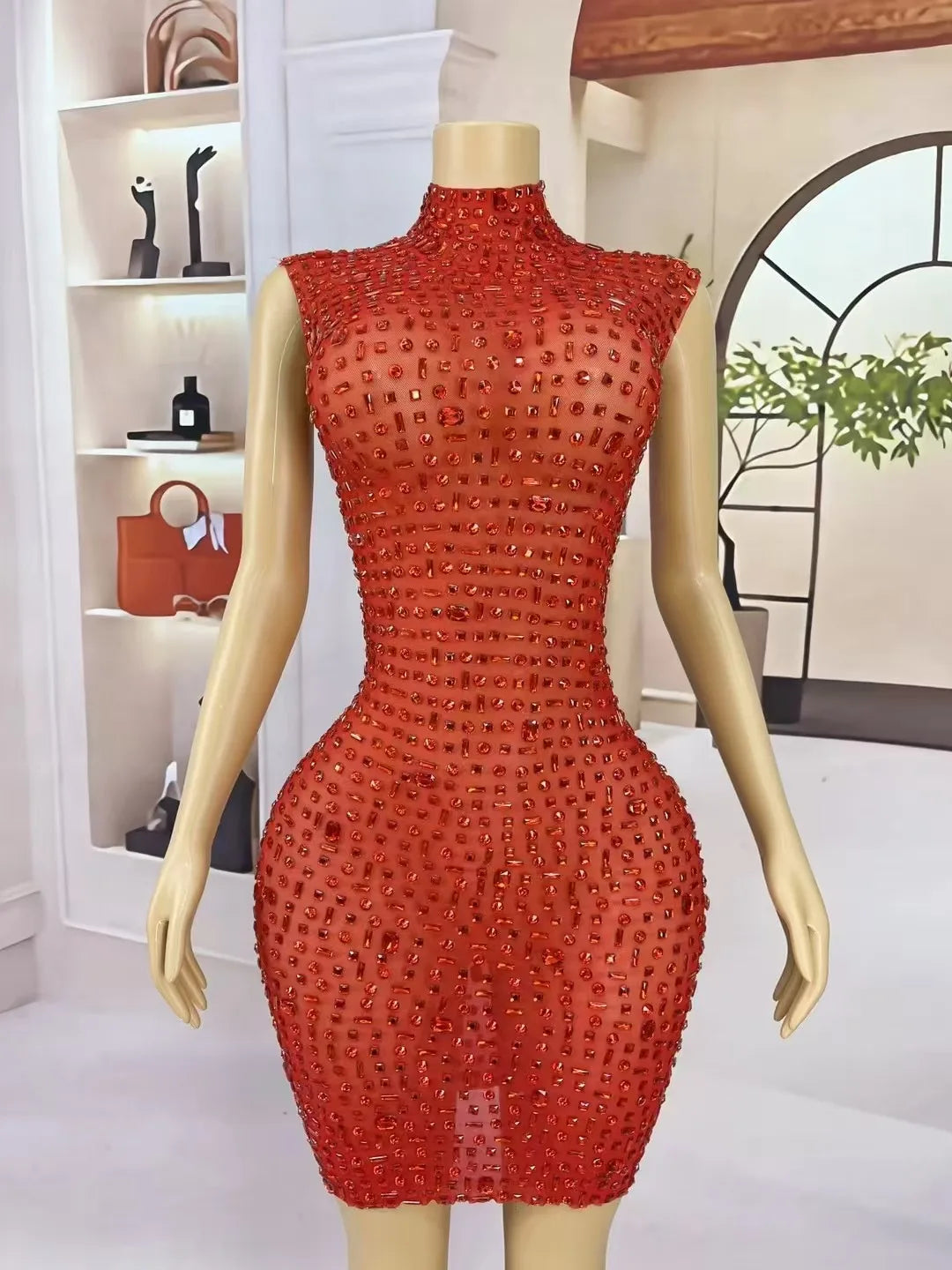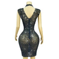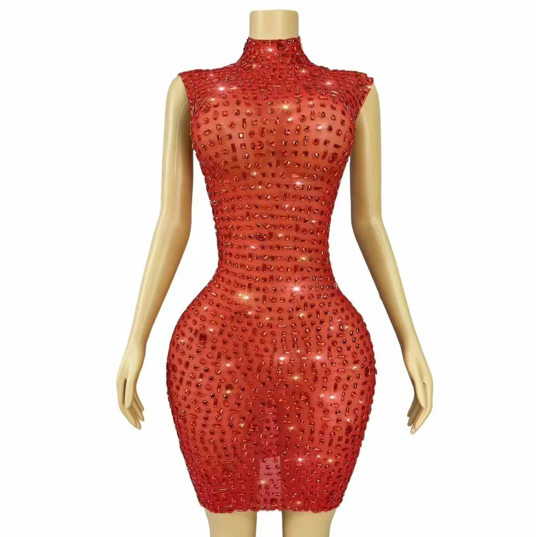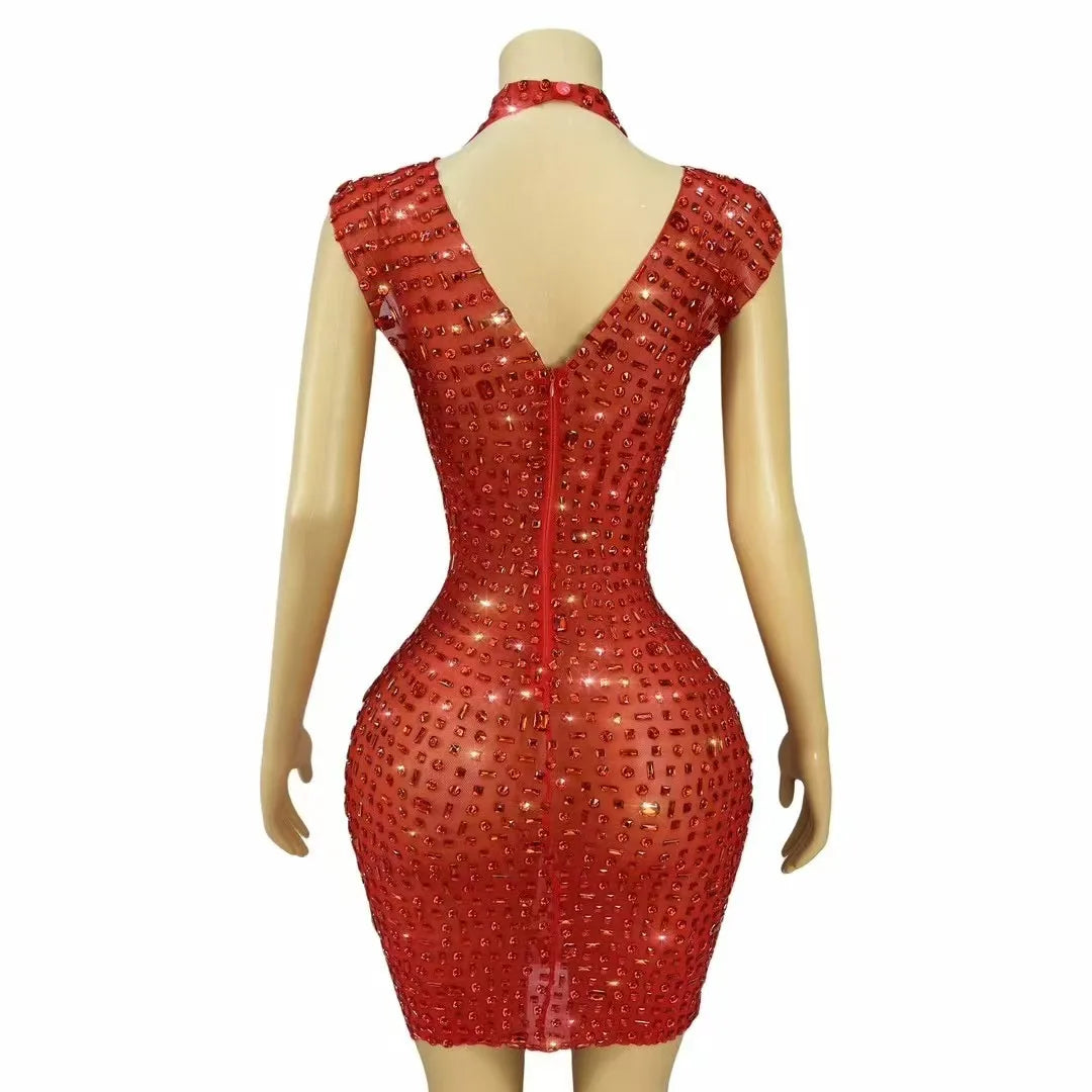 Turn heads and own the room in this Sexy Shiny Full Black Rhinestones Transparent Mesh Dress—an unapologetically glamorous piece designed for women who want to celebrate, seduce, and shine. Crafted from sheer, high-quality black mesh that flatters every curve, this dress blends delicate transparency with bold embellishment: the entire silhouette is lavishly covered in sparkling black rhinestones that catch and reflect light with every movement, creating a mesmerizing, jewel-like shimmer perfect for birthday nights, evening cocktail parties, VIP events, or nightclub dancing.