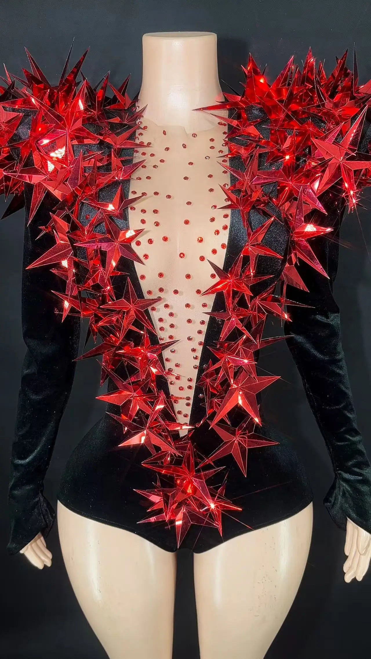 Brilla con luz propia en el escenario con este sexy mono ajustado con deslumbrantes lentejuelas y espejos. Los leggings elásticos transparentes ofrecen un look atrevido y llamativo, perfecto para espectáculos de danza, fiestas y discotecas. Este glamuroso traje se adapta a tus curvas y garantiza la máxima libertad de movimiento, ideal para artistas que buscan destacar con estilo y confianza. Haz de cada espectáculo un evento memorable con este impresionante atuendo.