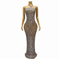 Sexy Stage Luxury Evening Blingnling Silver Rhinestones Bandage Backless Dress Women Birthday Party Perform Photoshoot Costume