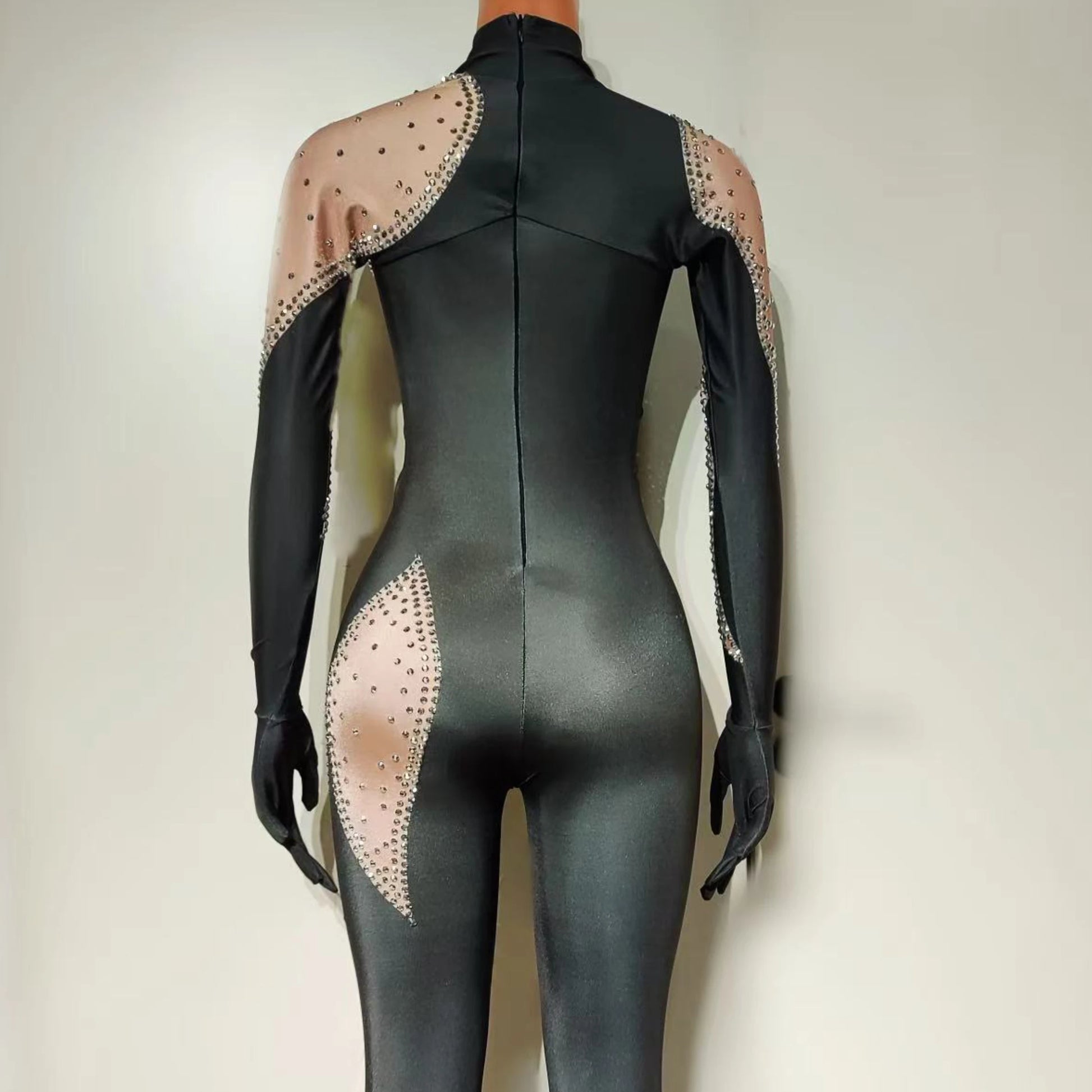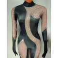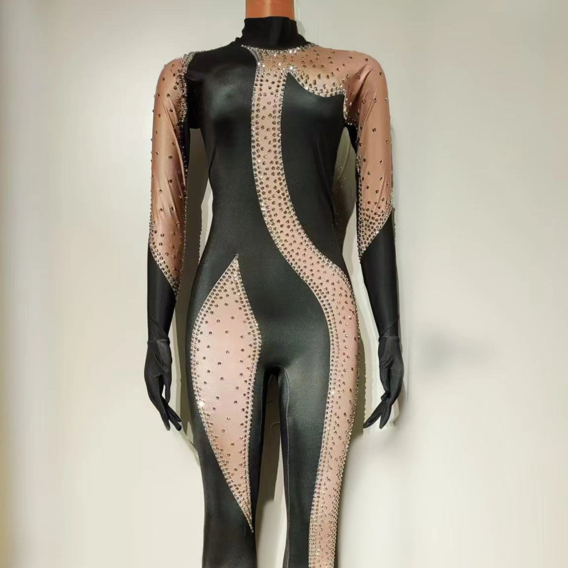 Dazzle the crowd in this Sexy Stage Sparkly Rhinestones Jumpsuit, crafted for bold, confident women who love luxury. This glamorous one-piece features shimmering rhinestones on sheer, stretchy spandex for a striking, body-hugging look. The perfect costume for dance performances, drag queen shows, or nightclub stage wear, its brilliant sparkle and sleek silhouette ensure you steal the spotlight at every event. Shine with confidence and showcase your unique style in this show-stopping ensemble.