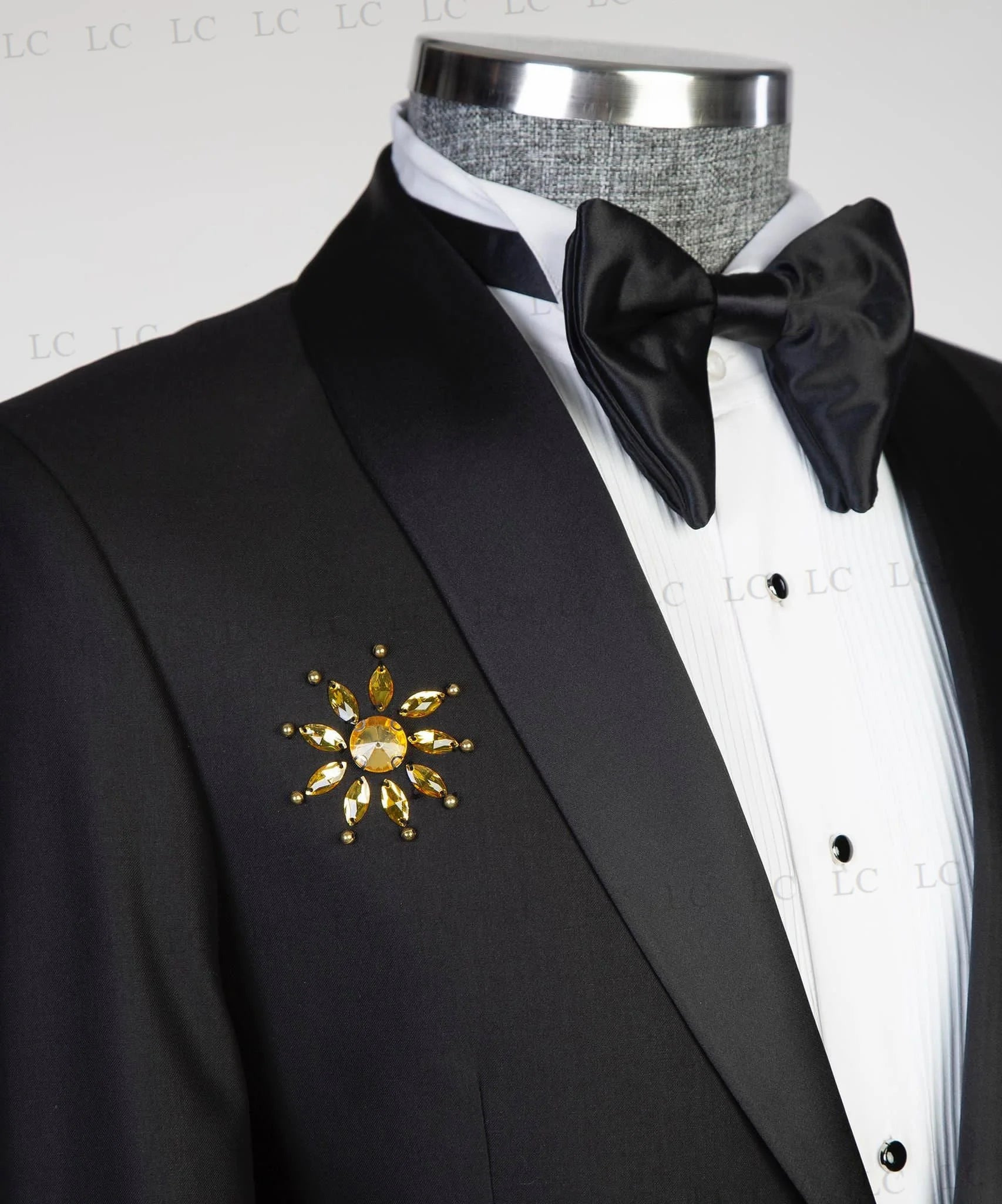 Haga una entrada triunfal con nuestro traje negro especial para hombre, elaborado por expertos para lograr elegancia y estilo. Este conjunto de dos piezas incluye un blazer y un pantalón a medida, con un sofisticado cierre de un solo botón. Adornado con lujosos diamantes dorados y cuentas intrincadas, este traje es perfecto para graduaciones, eventos formales y bodas. Disponible en tallas grandes, garantiza un ajuste cómodo y favorecedor para cada novio. Realce su colección de ropa formal con este impresionante traje que combina un diseño clásico con un toque moderno.