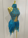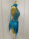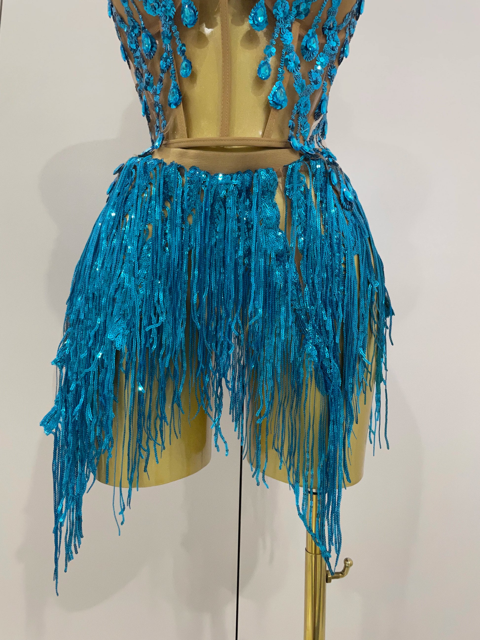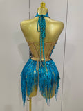 Sexy Shining Diamond Sequins Tassels 2 Pieces Set Mini Dress Women Evening Birthday Party Nightclub DJ Stage Costume