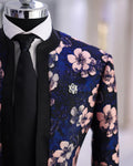 Stylish Men Suits Tailor-Made 2 Pieces Standard Lapel Jacket Flowers Blazer One Button Groom Customized Coat Black Pants