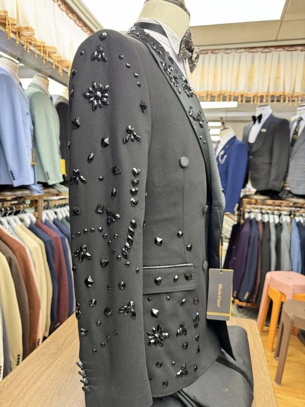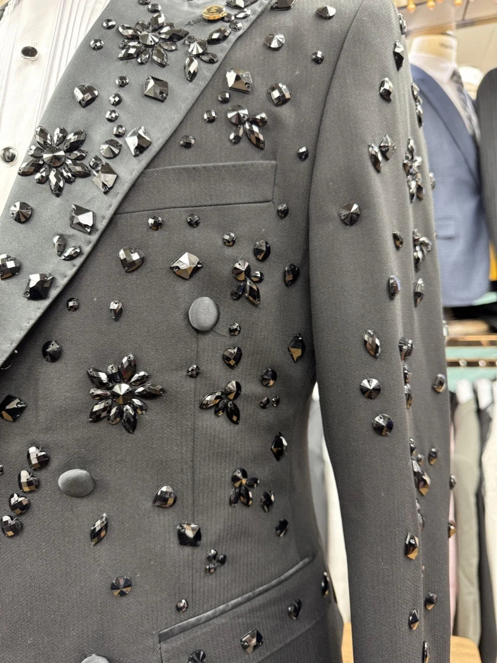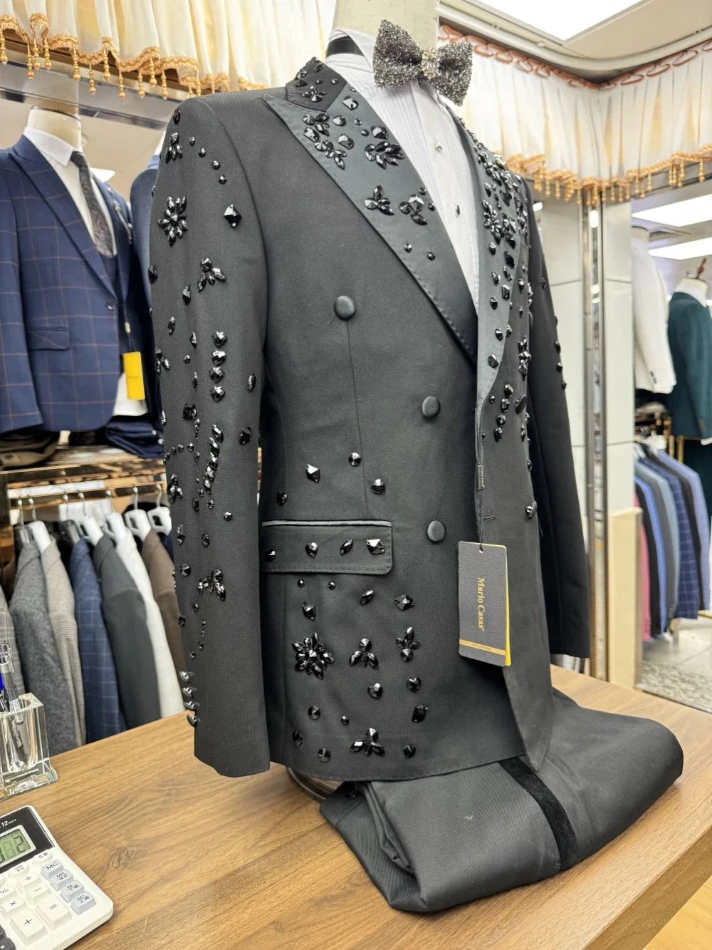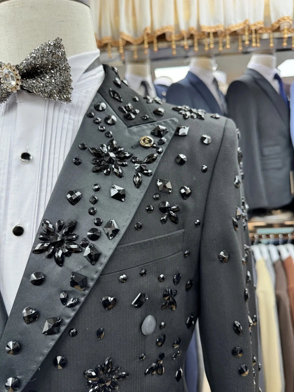 Make a striking, elegant entrance with this Stylish Men’s Suit — a tailor-made 2-piece ensemble featuring a double-breasted peaked lapel blazer with crystal accents paired with matching tailored trousers. Designed for proms, formal occasions, weddings, and red-carpet events, this set blends classic menswear structure with refined sparkle for a memorable, high-fashion look.