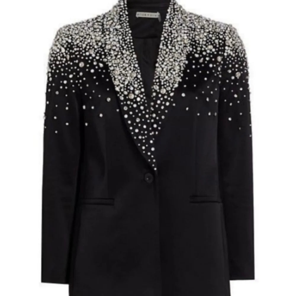 Stylish Wedding Tuxedos Beaded Crystal Shawl Lapel 1 Pcs Men Jacket Classic One Button Evening Party Prom Blazers Customized