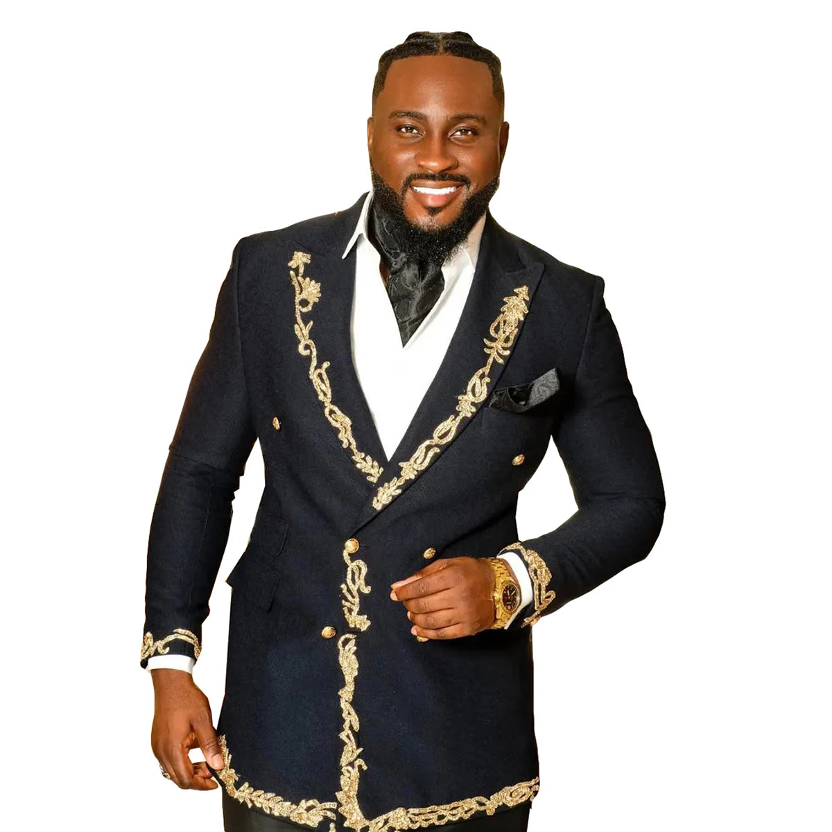 Vintage Men Suits Tailor-Made 2 Pieces Appliques Peaked Lapel Jacket Blazer Double Breasted Evening Party Customized Coat Pants