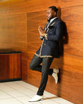 Embody timeless elegance with this Vintage Men’s Tailor-Made 2-Piece Suit — an artfully designed ensemble that blends heritage styling with modern craftsmanship, perfect for evening parties, formal dinners, weddings, and special occasions. The centerpiece is a double-breasted blazer with a distinguished peaked lapel, expertly cut to evoke classic menswear proportions while remaining flattering for contemporary silhouettes. Hand-applied appliqués—available in textured fabrics, tonal embroidery, or subtle metallic accents—trace the lapel and shoulder lines to add depth and bespoke character without overpowering the refined vintage aesthetic.