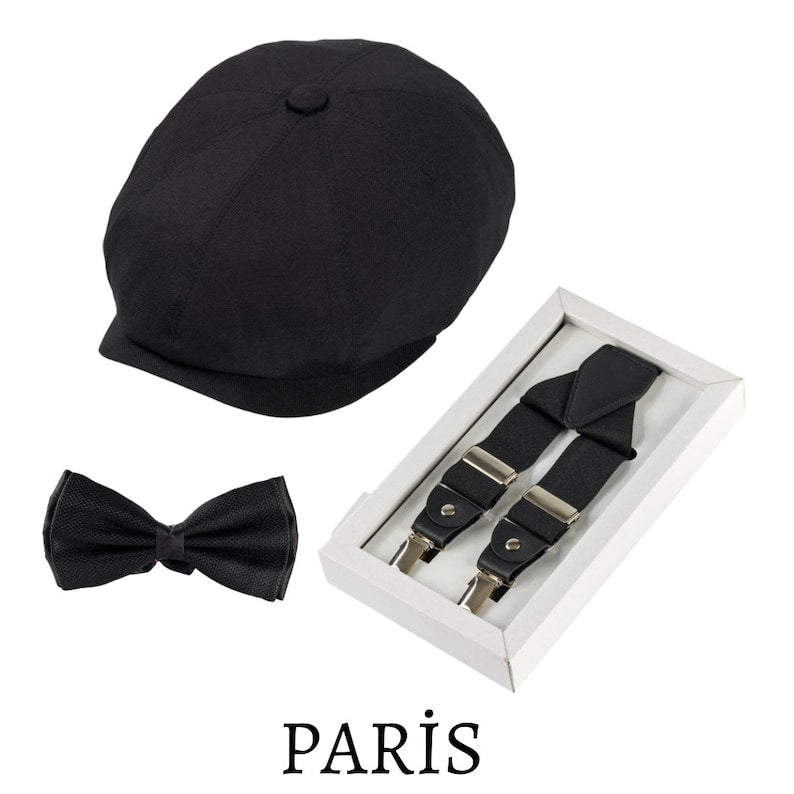 Conjunto de 3 piezas para boda (sombrero, tirantes y pajarita), accesorios para traje, gorra de repartidor de periódicos (novio, padrino y padrino), boda, sombrero de novio, regalos para padrinos de boda.