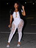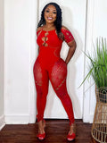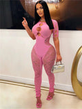 Puss Rhinestone Embellished Women Jumpsuit Backless Halter Hollow Sheer Sexy Slim One Pieces Bodycon Hottie Party Clubwear