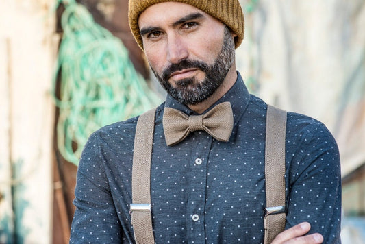 Ensemble de bretelles pour costume adulte, bretelles et nœud papillon pour marié, bretelles en lin pur pour homme