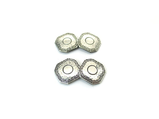 Boutons de manchette antiques en argent sterling martelé, style Art déco, double face, avec clé grecque gravée, style vintage pour homme, années 1920