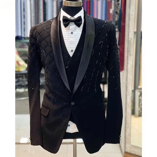 Brillez lors de votre prochain événement avec le costume homme Blazers Noirs à Paillettes et...