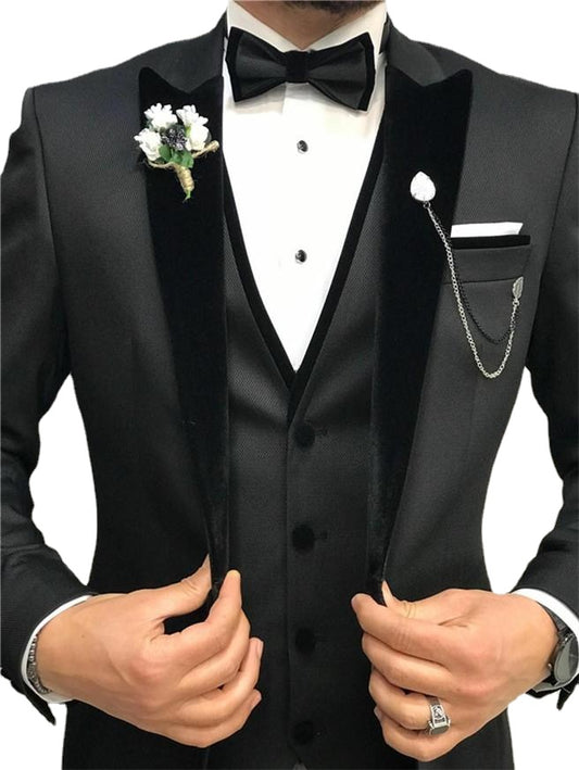 Costume 3 pièces noir à motif pour homme, smoking, tenue de marié, pantalon de mariage, costume d'affaires, bal, soirée, blazer