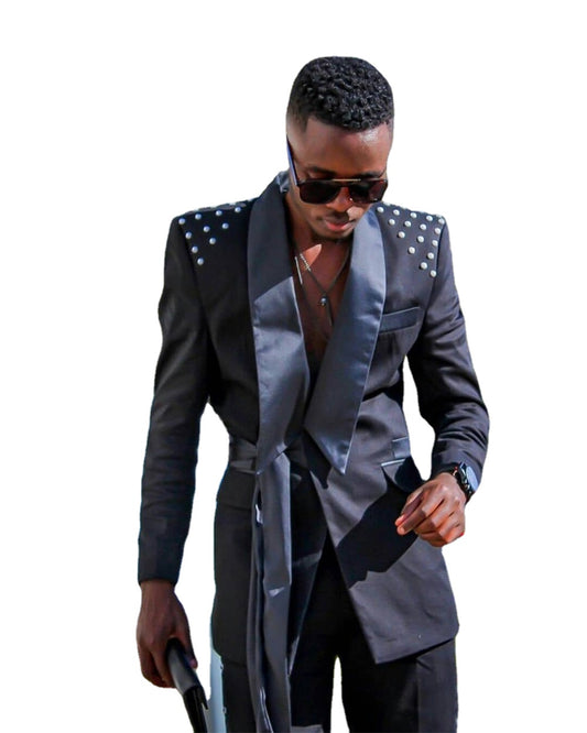 Découvrez notre costume de marié habillé Black Pearls, orné de perles et de cristaux, un...
