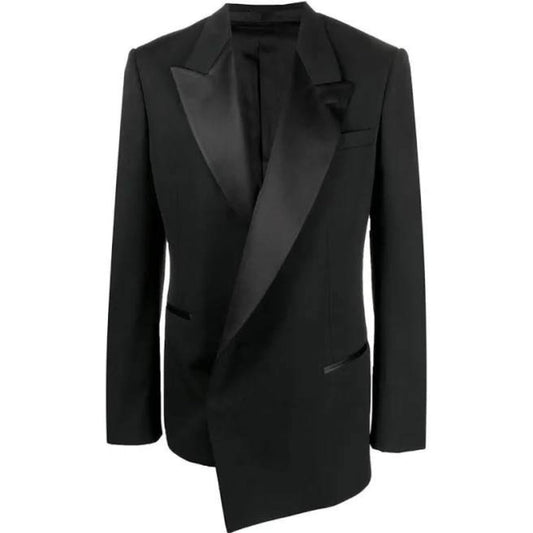 Costume 2 pièces noir à revers en satin pour homme, veste et pantalon asymétriques, costume de mariage ou de fête