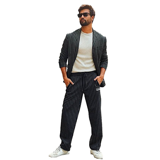 Costume homme 2 pièces noir à rayures fines, blazer et pantalon croisé, coupe slim, formel, décontracté, pour soirée, sur mesure