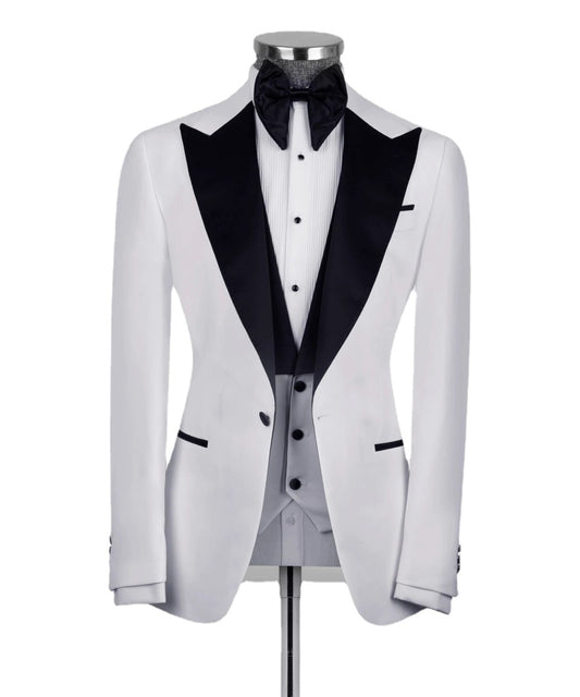 Costume de mariage 3 pièces pour homme, col en satin noir, smoking blanc, blazer, pantalon, costume de soirée formel pour homme
