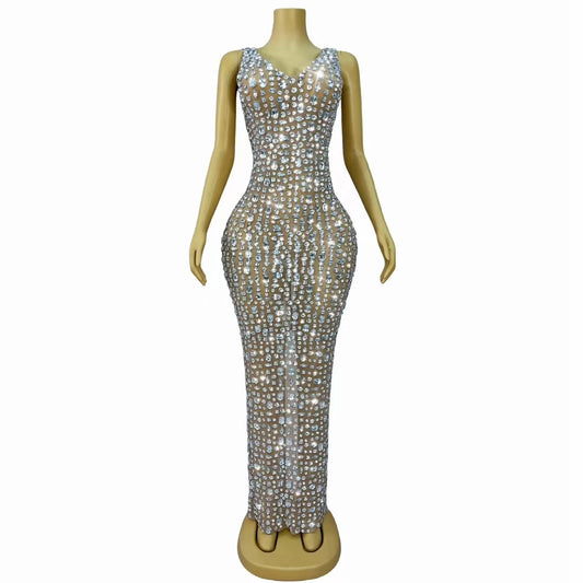 Make a dazzling statement with the Shining Rhinestones Sexy Mesh Prom Dress, a luxe evening outfit...
