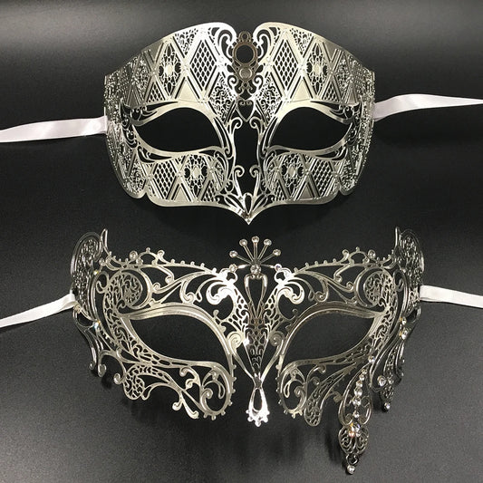 Silver Metal Filigree Men Women Venetian Masquerade Ball Masks Lovers Gold Mardi Gras Shows Ball Wedding Couple Party Mask Set