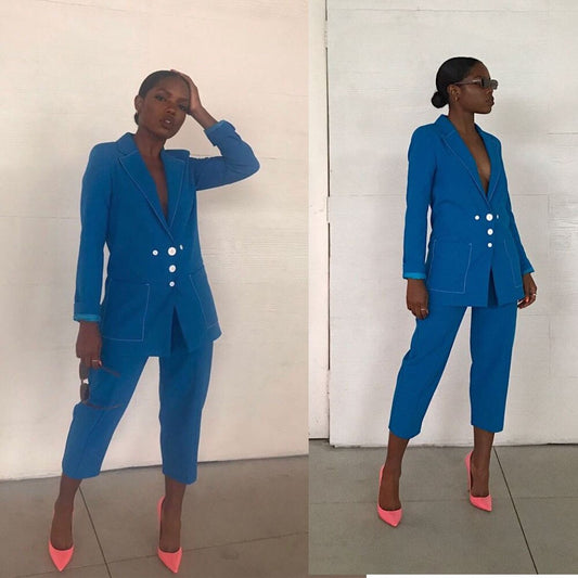 Ensemble 2 pièces pour femme, veste et pantalon, coupe ample, croisé, idéal pour une soirée ou un mariage