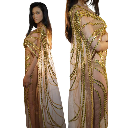 Sparkly Gold Sequins Mesh Celebrate Evening Prom Gown Long Dress Birthday Outfit Singer Stage Wear Show Costume