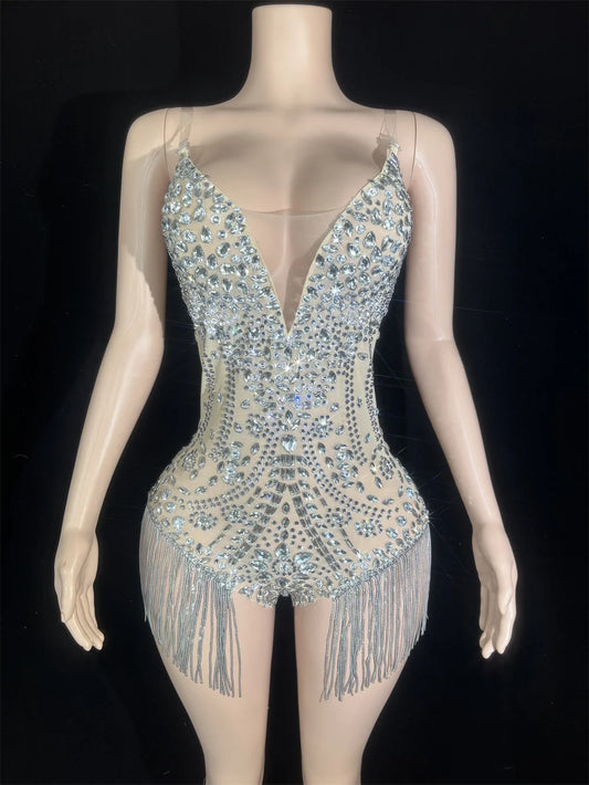 Dazzle the crowd in this sparkly rhinestone chains bodysuit—a show-stopping choice for women ready to...