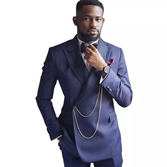 Costume de mariage bleu marine à revers spécial pour homme, veste blazer, smoking, marié, 2 pièces, manteau et pantalon