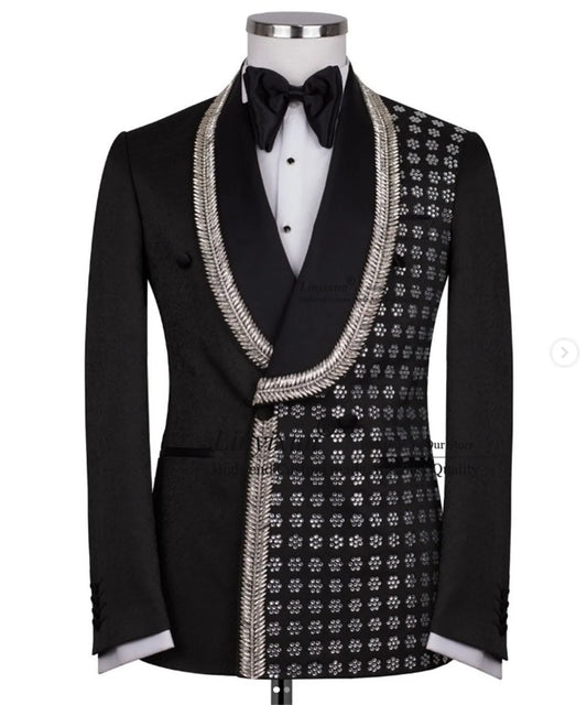 Superbes costumes pour hommes avec diamants et pierres précieuses, smoking de mariage à revers châle, blazer de bal personnalisé, ensembles 2 pièces Trajes Para Hombre