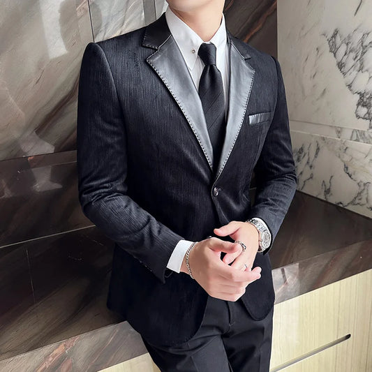 Veste de costume élégante en velours noir pour homme, tenue d'occasion tout-en-un élégante, design texturé en peau de cerf de luxe
