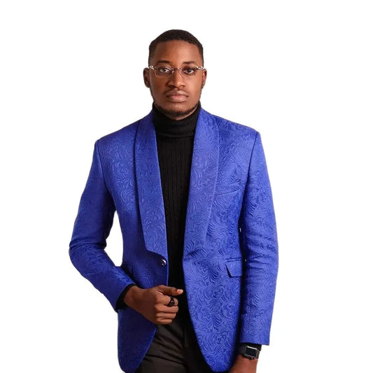 Costume de mariage pour homme, bleu royal, jacquard, pantalon noir, costume moderne pour homme, robes pour marié, blazer de luxe 2 pièces