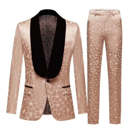 Costume deux pièces en jacquard pour homme, sur mesure, simple boutonnage, revers, pour mariage (veste + pantalon)