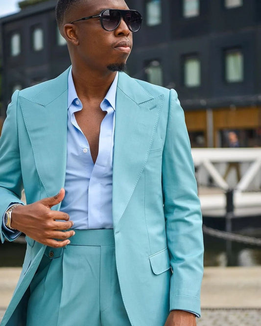 Costume homme sur mesure, blazer, pantalon, revers larges, bleu clair, tenue de marié, robe de mariée, ensembles de costumes personnalisés, veste et pantalon 2 pièces