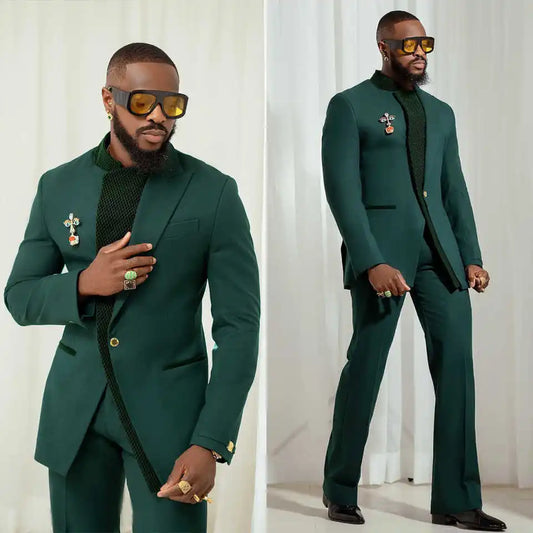 Costume de smoking de mariage vert tendance pour homme, coupe cintrée, 2 pièces (veste + pantalon)