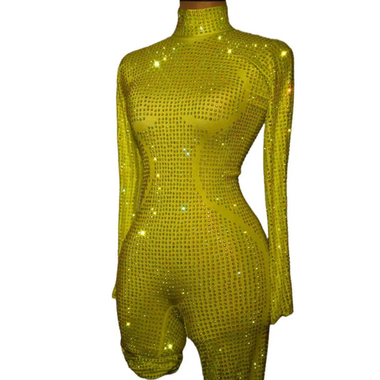 Combinaison tendance de luxe entièrement en diamants pour femmes, couleur bonbon, tenue de soirée, de bar, de discothèque, de scène, de gogo