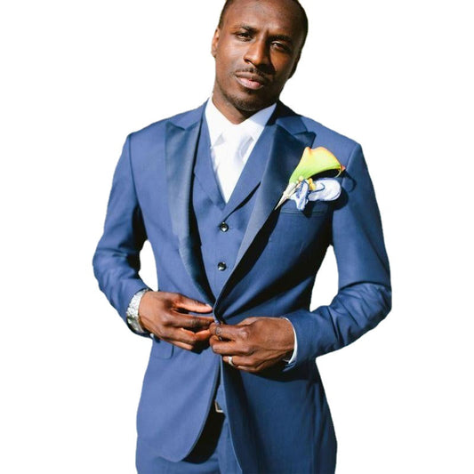 Tuksedo Pengantin Pria Biru dengan revers Puncak Ramping Cocok pour Gaun Pengantin Pria Jaket Blazer Pria Luar Biasa Setelan 3 Potong (Jaket + Celana + Rompi)