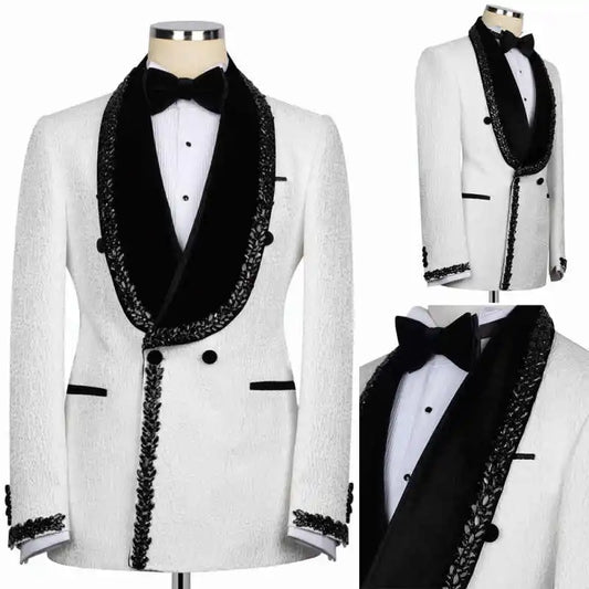 Elevate your formal wardrobe with the timeless glamour of our Vintage Crystal Men Wedding Suits. This...