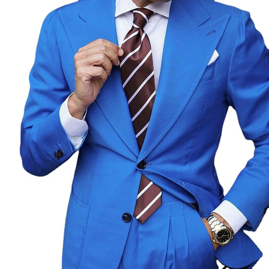 Le costume bleu roi pour homme à larges revers en pointe est un choix sophistiqué...