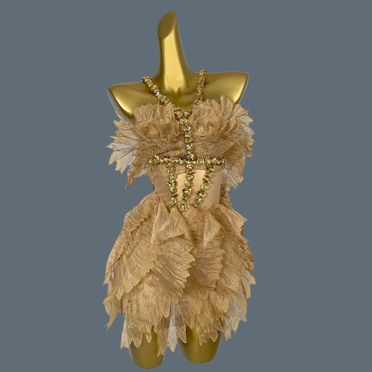 Turn every head in the room with this stunning gold short dress, inspired by celebrity...