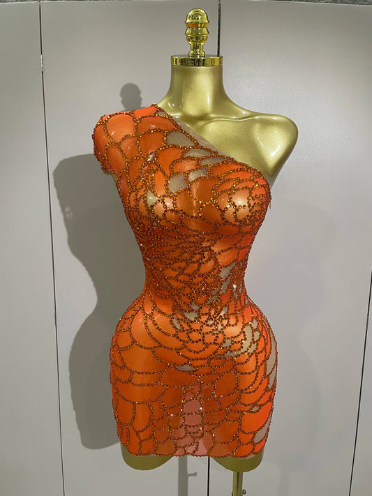 Step into the spotlight with this stunning one-shoulder dress adorned with shining rhinestones. Designed to...
