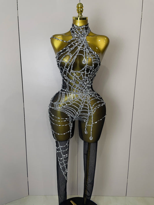 Women Sparkly Diamond Sexy Mesh Jumpsuit Nightclub Bar Party Show Gogo Dancer Clothing Drag Queen Outfit Stage Costume