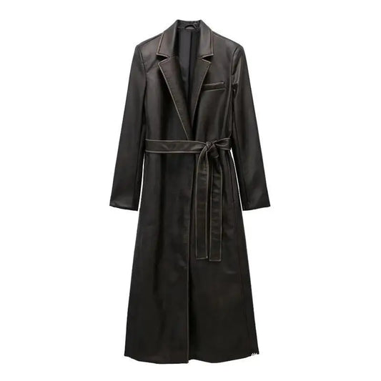 Winter Leather Women Suit Long Blazer with Belt Clothes Female Overcoat Business Work Wear Jacket Casual Hot Girl Coat