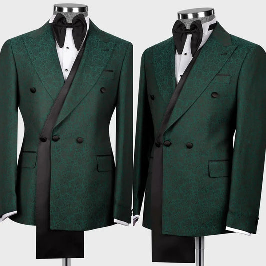 Vintage Men Suits Tailor-Made One Piece Coat Jacquard Peaked Lapel Blazer Casual Double Breasted Groom Customized Only Jacket