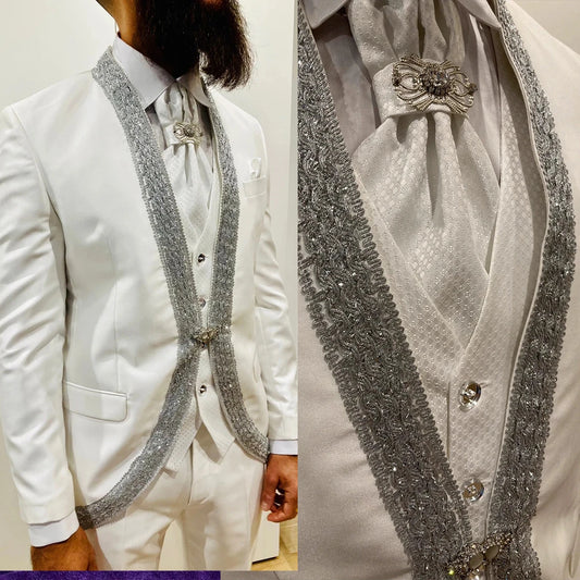 This Elegant Men’s Beaded Suit combines classic tuxedo lines with artisanal beading for subtle sparkle...