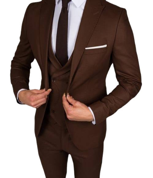 Costume homme marron 3 pièces (veste + pantalon + gilet) sur mesure smoking slim fit costumes de bal Terno hommes costumes