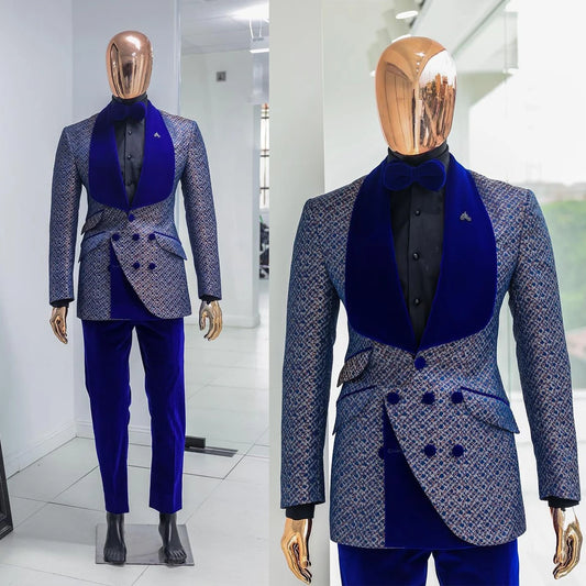 Appliques Wedding Men Coat Peaked Lapel Double Breasted Tuxedos Blazer Slim Fit Clothing Party Only Jacket Customized