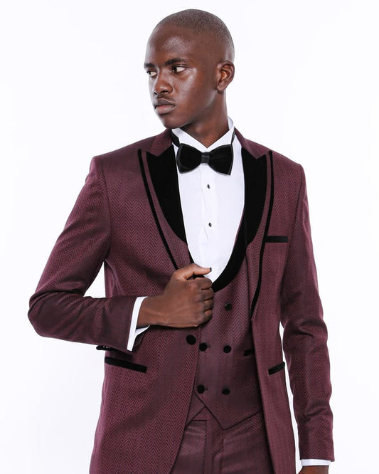 Costume de mariage bordeaux pour homme, ensemble 3 pièces, coupe slim, formel, grande taille, smoking (blazer, pantalon, gilet)