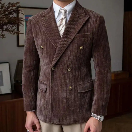 AutumnCasual Striped Jacket Men Blazer Masculino Blazer Hombre Italian Style Double Breasted Blazer Men Lapel Colla Blazer Homme